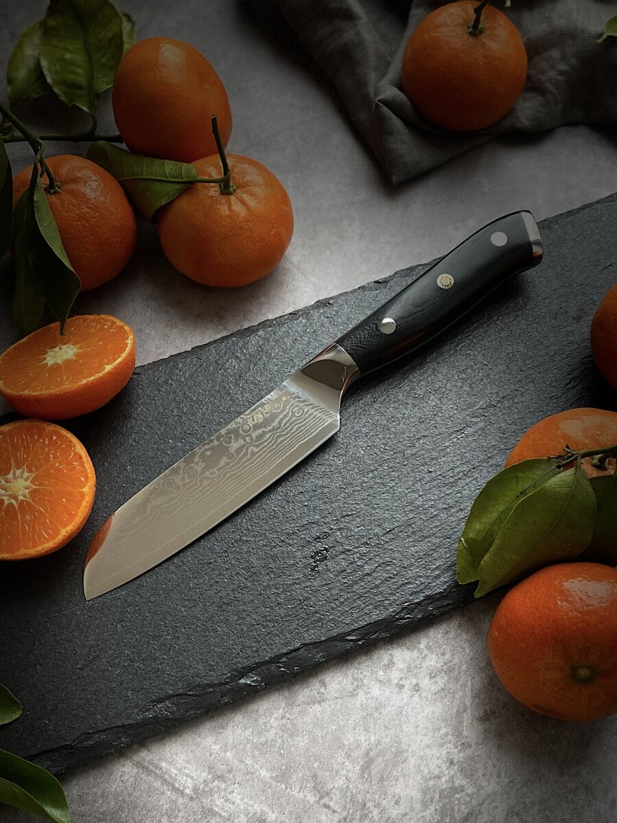 67 vrstev vysoce odolné damaškové oceli s jádrem z nerezové oceli docílí ideální tvrdosti i pružnosti pro perfektní manipulaci. Leštěná rukojeť z materiálu G10 určeného pro dlouhou výdrž. Tvrdost našich nožů je hodnocena 60±2 HRC. Je extrémně ostrý, lehký a odolný vůči korozi. |