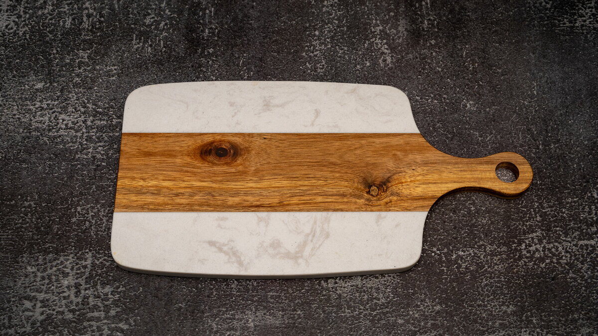 Navíc k této sadě obdržíte i prkno z akáciového dřeva s bočními částmi z mramoru v sobě kombinuje přírodní kontrast i praktičnost. Akácie dodává hřejivý tón a přirozenou kresbu, zatímco mramor přináší eleganci a pevnost. Díky spojení těchto materiálů působí prkno moderně a nadčasově. Je vhodné pro běžné kuchyňské používání, přípravu i servírování pokrmů, zároveň však skvěle vynikne i jako designový prvek nebo dárek. Každý kus je originál – ručně opracovaný a jedinečný ve své struktuře i barvě.